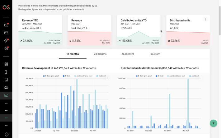 - At the top level, Bookwire OS offers a complete overview of all current sales and revenues from your digital business – that way, you can always keep an eye on big developments.